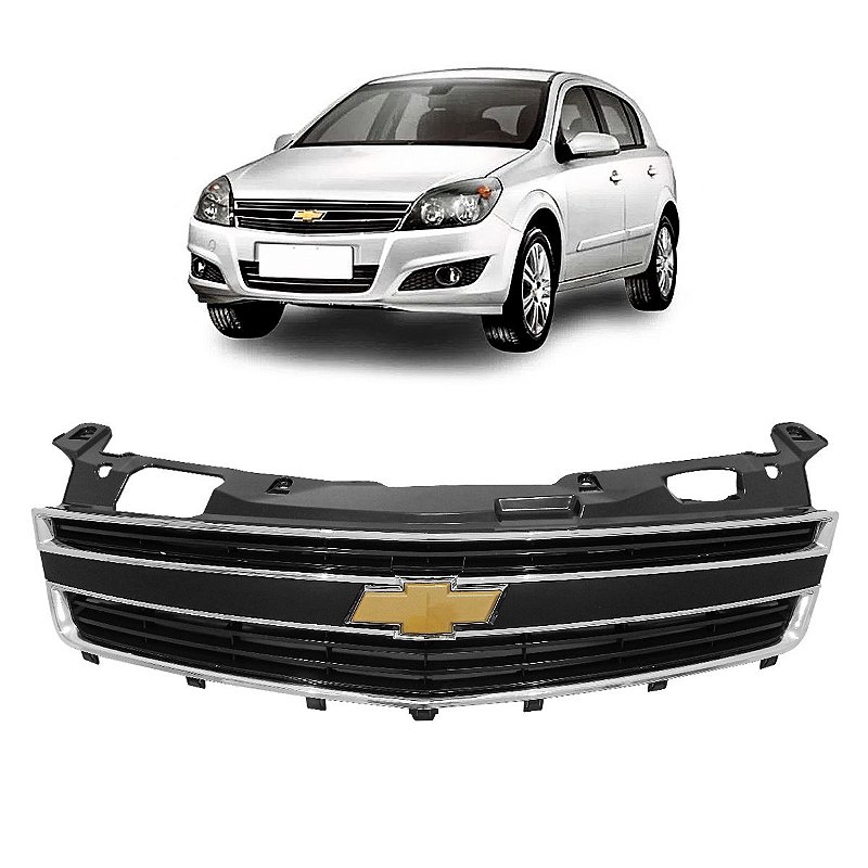 GRADE SUPERIOR VECTRA 2009 ATÉ 2013 PRETA COM FRISO CROMADO E EMBLEMA.