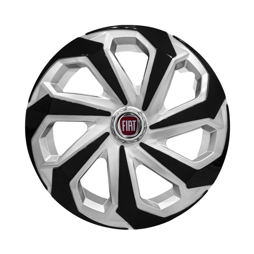 Jogo Calota Esportiva Aro 14 Spider Silver/Black emblema Fiat Vermelho