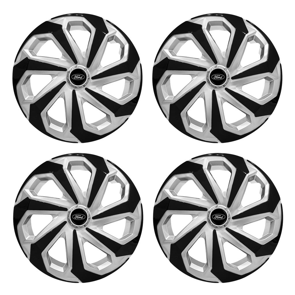 Jogo Calota Esportiva Aro 15 Spider Silver/Black emblema Ford Preto