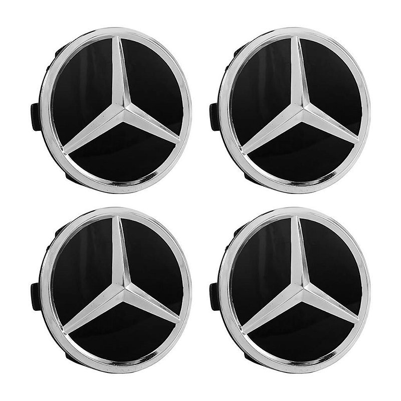 Jogo Calotinha Mercedes 75mm Preta Brilhante com Emblema Cromado
