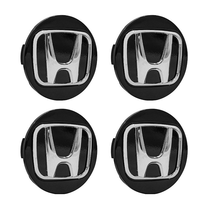 Jogo de Calotinha 69mm Centro de Roda Honda CRV HRV Accord Preta Emblema Cromado